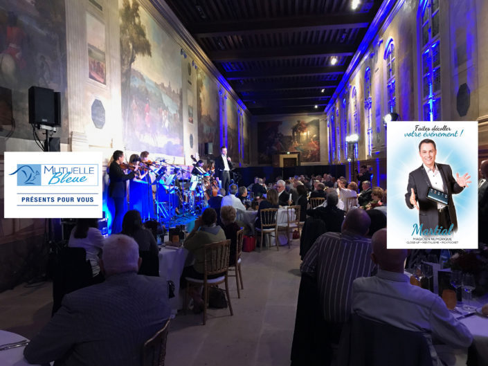 Anniversaire 15 ans de MUTUELLE BLEUE aux Invalides à Paris animé par Martial magicien professionnel. La société MUTUELLE BLEUE a choisi un lieu historique, Le Musée de l’Armée aux Invalides à Paris pour fêter ses 15 ans. La compagnie d’assurance avait invité 130 convives lors d’un dîner donné dans la salle Turenne, le décor illustre la gloire des campagnes militaires de Louis XIV et rend compte de toute la magnificence du Grand Siècle. Un orchestre à cordes a interprété un répertoire éclectique mêlant la musique classique allant de Beethoven à celle d’aujourd’hui. La magie digitale a suscité la stupéfaction lorsque Martial est passé aux tables pour offrir une présentation personnalisée en faisant apparaitre le logo de la société et des objets venus de nulle part. La direction ravie de la performance lui donnera l’occasion de réitérer son art lors d’une seconde soirée le 26 septembre au Restaurant du Musée du Quai d’Orsay. Ce fut un véritable feu d’artifice avec la magie numérique de Martial. Le public a été conquis par son intervention drôle et innovante. Si vous organisez un événement important est que vous souhaitez le rendre magique, alors offrez-vous les services de Martial.