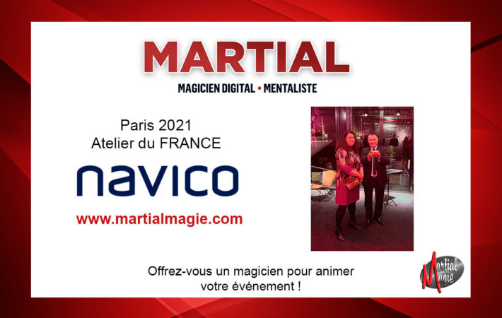 C’est à l’atelier du France à Paris que s’est déroulée une soirée en comité restreint. La société NAVICO a offert à ses clients un peu de rêve avec Martial magicien professionnel. Magicien à Paris pour NAVICO. Ainsi ce magicien mentaliste est intervenu parmi les invités pour leur offrir un programme éclectique. Martial vous propose d’intervenir sur vos événements partout en France. Par ailleurs il vous présentera des expériences magique très variés. Depuis quelques années Martial utilise la tablette numérique pour réaliser des miracles. Il passe de groupe en groupe ou de table en table. D’ailleurs vous pourrez visiter son site Internet et visionner ses vidéos. Ainsi vous constaterez combien les invités sont heureux de découvrir la magie de Martial. La magie digitale est nouvelle. Martial personnalise sa prestation en utilisant votre logo et en faisant apparaître votre produit.