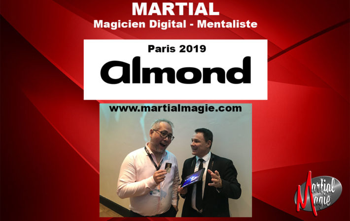 C’est un magicien à Paris qui a été choisi par la société Almond pour sa grande soirée au Pavillon Wagram. Martial est un magicien professionnel qui est intervenu lors de cette soirée parmi les 200 invités. Magicien close- up mais aussi magicien digital il a offert aux convives un programme très varié d’expériences interactives. Ce magicien des temps modernes utilise les tablettes et les smartphones pour réaliser des performances incroyables. A travers son programme il révèle également des informations et réalise des expériences de mentalisme. Il intervient pour les entreprises lors de séminaires de congrès ou de salons professionnels. Martial est un magicien qui vous proposera éventuellement une personnalisation lors de votre événement. Cette dernière consiste à faire apparaître des objets relatifs à la thématique de votre entreprise. Il peut aussi intervenir sur scène lors d’un séminaire ou d’un congrès avec une magie participative drôle et surprenante. Magicien à Paris il peut aussi présenter un spectacle à votre domicile pour un anniversaire un mariage ou un baptême. Le magicien est l’artiste incontournable dans une fête car il suscite une grande curiosité et les invités sont dans l’attente d’être bluffer. Martial magicien numérique présente avec ses tablettes des numéros hors norme, c’est pourquoi les entreprises le sollicitent partout en France lors d’événements très différents. Contactez-le et vous serez enchantés par son travail le fruit de 32 ans d’expérience. Son programme est composé de tours mêlant la magie, le mentalisme et le digital. On peut voir sortir de ses tablettes des objets tels qu’une clef USB, un stylo, un poisson rouge ou encore du champagne. C’est déroutant et à la fois magique, le public est conquis par cette magie moderne et totalement innovante. L’humour est également au programme, ce qui apporte une valeur ajoutée à ses performances. Tous les ingrédients forment ce cocktail détonant de qualité.