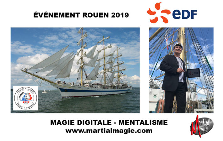 Merveilleuse soirée autour d’un magicien digital Rouen sur le Mir un voilier russe pour cette Armada 2019 avec la société EDF. Martial est un magicien digital Rouen qui est intervenu parmi les invités lors de cette soirée exceptionnelle. La magie digitale mêlée au mentalisme est surprenante et permet à la fois des révélations et des apparitions d’objets. De belles performances ont séduit le public qui a eu la chance de passer un long moment sur ce voilier impressionnant de type trois-mâts carré en acier battant pavillon russe. Son port d’attache est Saint-Pétersbourg. Cet événement réunissant les plus beaux voiliers du monde permet à des entreprises d’organiser leurs événements dans un lieu atypique. Le magicien digital Rouen a offert des expériences incroyables pour divertir les invités. Une ampoule s’est soudainement allumée dans la main d’un spectateur à la révélation de sa carte, un poisson rouge est sorti de sa tablette et des expériences de magie digitale ont subjugué les invités. Grande expérience pour Martial un magicien qui travaille pour les entreprises partout en France depuis 32 ans. N’hésitez pas à le contacter si vous souhaitez marquer votre événement avec une animation originale et moderne. Visitez son site avec ses vidéos efficaces qui vous présenteront la couleur de son travail. Martial ce magicien digital est également magicien mentaliste et vous propose un show sur scène. Un cocktail formidable de magie et d’humour apportera à votre événement un souvenir mémorable à vos invités. De nombreuses entreprises ont fait confiance à Martial un magicien professionnel qui sait s’adapter à tout type d’événement. La magie est une discipline qui attire tous les publics car il conjugue surprises et participation du public. Offrez à vos invités une soirée unique en engageant ce magicien digital pourvu d’une grande expérience de son métier. Demandez-lui un devis il sera réactif et vous fera une proposition adaptée à votre projet.