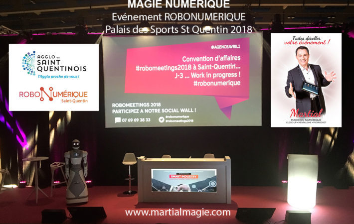 Grande soirée Networking au Palais des Sports de St Quentin avec Martial qui est intervenu en présentant la magie digitale. Magicien Ipad Évènement ROBONUMERIQUE ST QUENTIN. Ce magicien professionnel a fait participer lors du cocktail les 200 invités. Le spectacle était dans la salle avec la magie numérique. Martial a apporté une touche innovante dans cette prestation à travers des tours de magie utilisant des tablettes numériques, un outil dans l’ère du temps que chacun possède mais qui devient magique entre ses mains. Des objets apparaissent passant du virtuel au réel en une fraction de seconde avec une très grande rapidité tout cela agrémenté d’une histoire racontée pleine d’humour. Une excellente ambiance avec un public ravi et bluffé par les performances et obligé de constater combien la magie s’est modernisée autour d’accessoires inattendus tels qu’une tablette ou un portable. Des expériences de lectures de pensées ont été stupéfiantes lorsqu’il révèle à un invité l’heure de sa naissance prédite sur sa montre. Le magicien numérique utilise les nouvelles technologies pour rendre encore plus incroyables et impossibles des expériences qui sont très loin du lapin dans le chapeau. Martial est à votre disposition pour animer vos salons professionnels, vos soirées privées, il se déplace partout en France, contactez-le et vous serez enchantés par le fruit d’années de travail et d’expérience dans cet univers qui fait toujours autant rêver. La magicien classique a laissé la place à cet enchanteur des temps modernes, le show continue avec encore plus d’étonnement grâce aux nouvelles technologies.