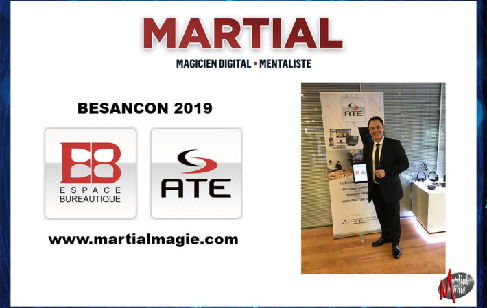 Un magicien mentaliste à Besançon utilisant le numérique a animé une journée clients et fournisseurs pour la société ATE Espace Bureautique. Cette nouvelle forme de spectacle de magie fut un succès auprès des invités. Martial magicien mentaliste à Besançon voyage partout en France pour les entreprises. Il présente lors de séminaires ou de salons professionnels un nouveau moyen de communiquer et de divertir à travers la magie digitale. Voilà une animation idéale et appropriée à une époque où le numérique est présent partout. Martial est intervenu en close-up en faisant participer les convives avec ses tablettes magiques. Ce magicien numérique propose un show interactif, drôle et bluffant en sortant par miracle de ses tablettes des objets. Il peut aussi personnaliser vos événements lors de la sortie d’un nouveau produit. Si vous êtes organisateur vous ferez le bon choix d’engager Martial pour marquer votre événement. Avec 30 ans de service au sein des entreprises il vous apportera une valeur ajoutée et divertira les invités avec une prestation de grande qualité. Il utilise à la fois le smartphone et des tablettes pour offrir un moment hors du commun. A la fois magicien mentaliste il utilise les technologies pour réaliser des miracles en révélant des informations auxquelles vous aurez pensé ou écrites. Les performances de ce magicien sont stupéfiantes avec une grande empathie envers son public. La magie devient moderne et innovante entre les mains de Martial. Vous serez enchantés par son travail. Les plus grandes entreprises lui ont fait confiance et vous pourrez visionner ses vidéos impressionnantes. L’animation d’un magicien est toujours un moment très attendu par le public. Il reste un moment inoubliable réveillant à chaque fois l’âme d’enfant qui sommeille en nous. Ce magicien close-up et mentaliste vous réserve de belles surprises à travers des effets inédits. Contactez-le pour une demande de devis au 0607709219. La magie numérique vous surprendra !