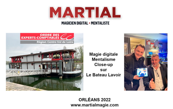 Très belle soirée organisée par l’ordre des experts-comptables à Orléans. C’est sur le bateau lavoir où Martial a offert aux invités un programme magique exceptionnel. Ainsi les invités ont pu apprécier la magie digitale et le mentalisme. Magicien mentaliste à Orléans pour le plus grand plaisir du public. Vous cherchez une prestation pour votre événement alors n’hésitez plus contactez Martial magicien numérique. Vous assisterez à une prestation moderne et innovante à travers la magie digitale.