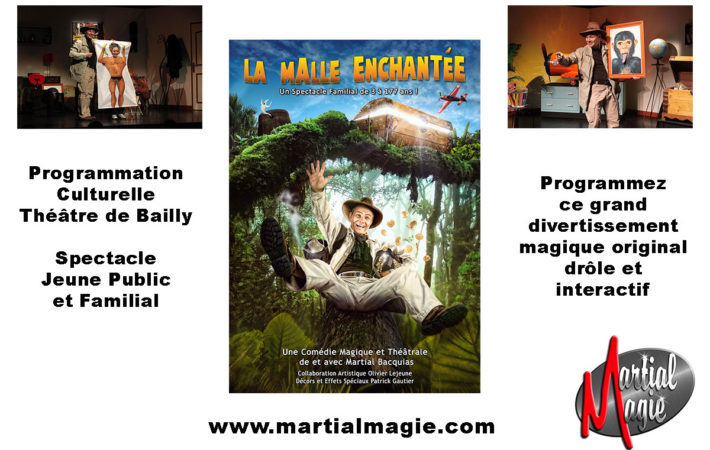 C’est au Théâtre de Bailly que le spectacle de Martial magicien pour enfants s’est joué ce samedi 13 octobre 2018 en faisant salle comble. La Malle Enchantée est un spectacle Jeune Public et Familial d’une heure écrit en collaboration avec Olivier Lejeune. Ce spectacle de magie enfants raconte un retour de voyage avec une malle remplie de souvenirs et surtout de surprises qui vont à la fois ravir les enfants et les parents. La magie est un genre très apprécié à tous les âges et Martial votre magicien pour enfant propose ce spectacle de Noël pour votre prochaine programmation. Il a joué ce spectacle dans toute la France à travers des festivals et des programmations culturelles. Énorme succès partout car tous les ingrédients sont réunis pour offrir au public une heure d’enchantement. C’est un spectacle original plein de créations sorties tout droit de l’imagination de Martial, un magicien professionnel pour enfants de 30 années d’expérience. Un cocktail d’humour, de magie et de poésie pour résumer l’ambiance de ce magnifique spectacle de magie réglé comme du papier à musique et d’une grande efficacité sur tout public. Un brin d’écologie est au programme pour sensibiliser les enfants au tri sélectif et au respect de notre planète. Vous cherchez un spectacle de grande qualité, alors contactez Martial, il comblera vos attentes, nombreuses sont ses références pour vous convaincre de faire passer à votre public un moment magique et inoubliable. Offrez-vous ce spectacle pour enfants qui rendra heureux les parents en constatant l’enthousiasme et le bonheur partagé lors de ce grand show plein de rebondissements.