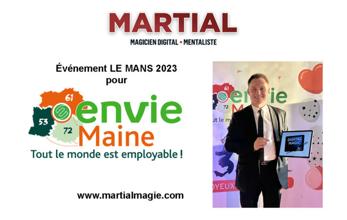 Martial a offert aux 150 invités une prestation exceptionnelle pour l’inauguration des nouveaux locaux de la société ENVIE MAINE. Magicien pour ENVIE MAINE LE MANS 72 avec un magicien numérique et mentaliste.