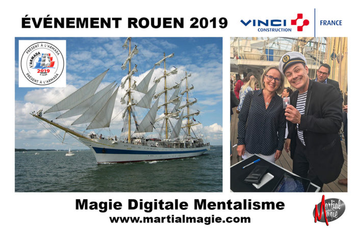 La magie digitale Rouen fut représentée par Martial un magicien professionnel qui est intervenu sur l’Armada pour Vinci Construction. Le voilier russe Le Mir a accueilli 250 personnes lors d’un cocktail dinatoire. La magie digitale Rouen a été une agréable surprise pour tous les invités qui ont découvert cette nouvelle animation. Martial est passé parmi le public pour faire des démonstrations de son talent avec une tablette. La magie digitale Rouen est un bon moyen de communiquer sur un événement tel qu’un séminaire ou un salon professionnel. Ce magicien digital intègre des images et des films qui lui permettront de matérialiser des objets et de faire du mentalisme. Son travail est le fruit de 32 années au service des entreprises partout en France. Il a renouvelé la magie en apportant cette touche moderne et totalement innovante. Les invités participent activement à ses expériences où il ne se content pas seulement de les bluffer mais l’humour est aussi au programme. Le magicien digital est l’artiste parfait qui saura vous enchanter avec un spectacle futuriste et attractif. Avec sa tablette lumineuse il réalisera des performances incroyables en faisant apparaitre votre produit. Ce qui peut fortement vous intéresser pour un prochain salon professionnel afin de mettre en avant un nouveau produit. Martial peut également donner des shows privés à domicile si vous organiser un mariage, un anniversaire ou une fête entre amis. La magie est un vecteur de communication de surprise et de joie. Contactez ce magicien digital Rouen qui vous proposera un devis et une prestation à la hauteur de vos attentes. L’exigence et la qualité sont les principes fondamentaux de Martial qui mettra tout en œuvre pour vous satisfaire. Il est capital pour un organisateur de faire le bon choix sur l’animation de son événement. Le magicien contribuera pleinement à la réussite de votre journée.