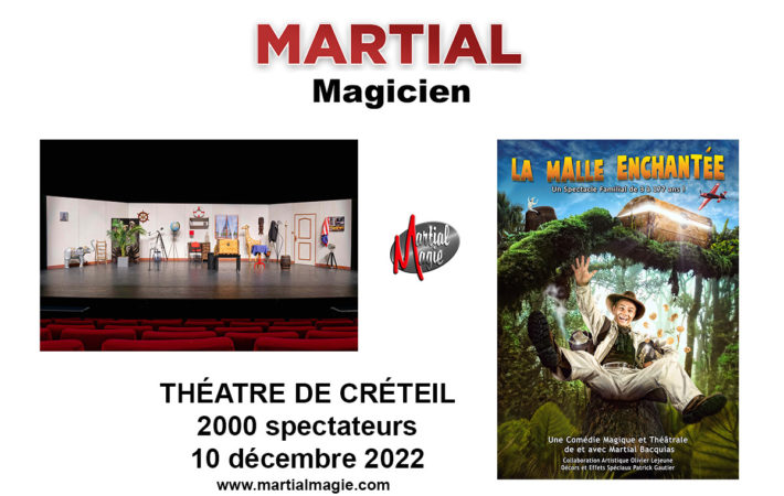 C’est au théâtre de Créteil devant 2000 spectateurs pour le Grand Paris Est qu’a eu lieu deux représentations de La Malle Enchantée. Ce spectacle de magie pour enfants s’adresse à un public familial. Ainsi, Martial a présenté ce grand spectacle de qualité qui raconte l’histoire d’un aventurier de retour de voyage. cette malle est remplie de souvenirs et d’objets magiques. Les enfants participeront activement tout au long du spectacle à des expériences incroyables. Le message se veut aussi écologique, « notre terre n’est pas une poubelle ! ». Spectacle de magie THÉATRE de CRÉTEIL, un show exceptionnel pour le plus grand plaisir des enfants mais aussi des parents.